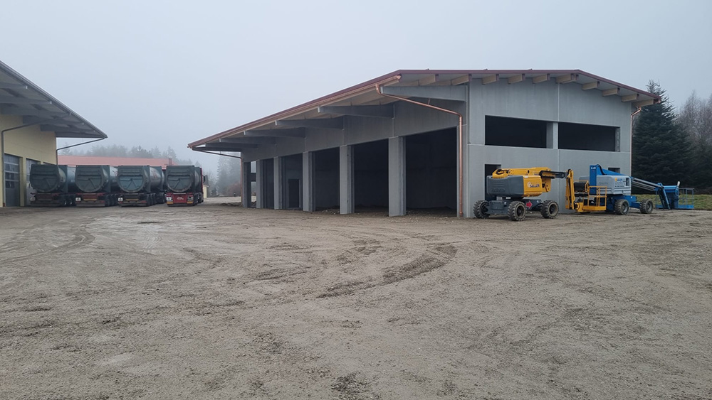 Ebenfalls konnte im Dezember der Neubau einer Lagerhalle mit knapp 400 Quadratmeter umgesetzt werden. So ist auch in Zukunft für ausreichend Lagerkapazität auf unserem Betriebsgelände gesorgt.